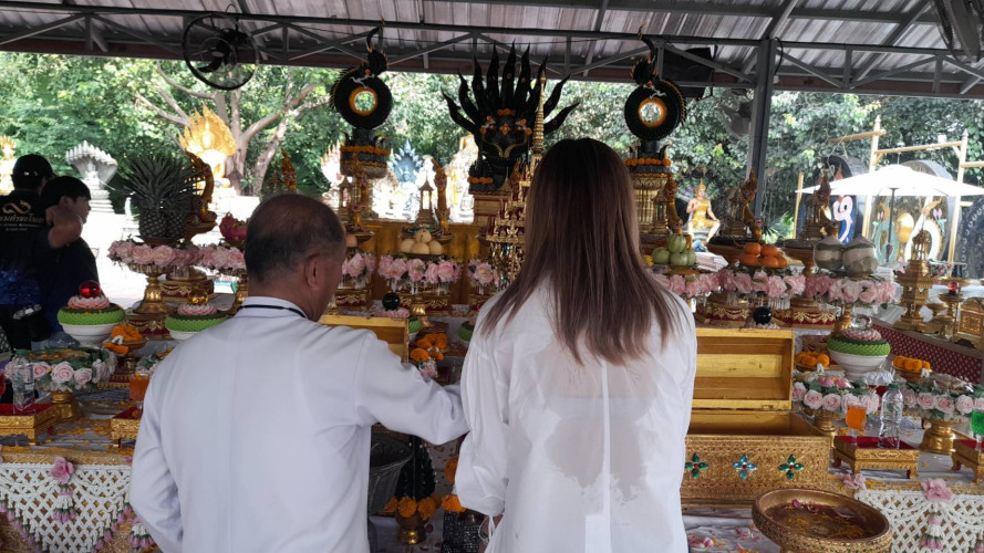 พ่อจ้ำยังฝากขันน้ำมนต์ที่พิธีที่บ้านในวันพระที่ผ่านมา น้ำตาเทียนสีขาวเป็นตัวเลข 90,09,87,78 นำไปซื้อ ลอตเตอรี่ ลุ้นถูกรางวัลงวดวันที่ 1 พฤศจิกายน 2567
